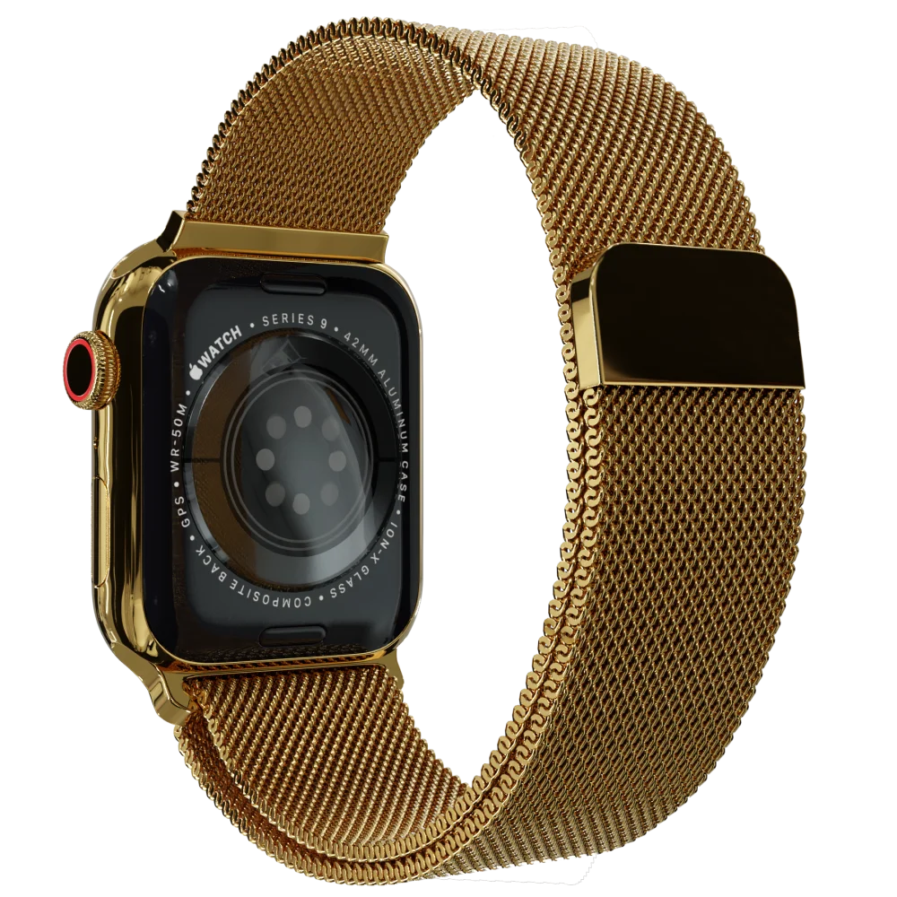 The Gold Apple Watch 11 with Milanese Strap is unlike no other. By syncing with your calendar, your notes, and your schedule. It understands your personal use of time and allows for seamless management of your life.