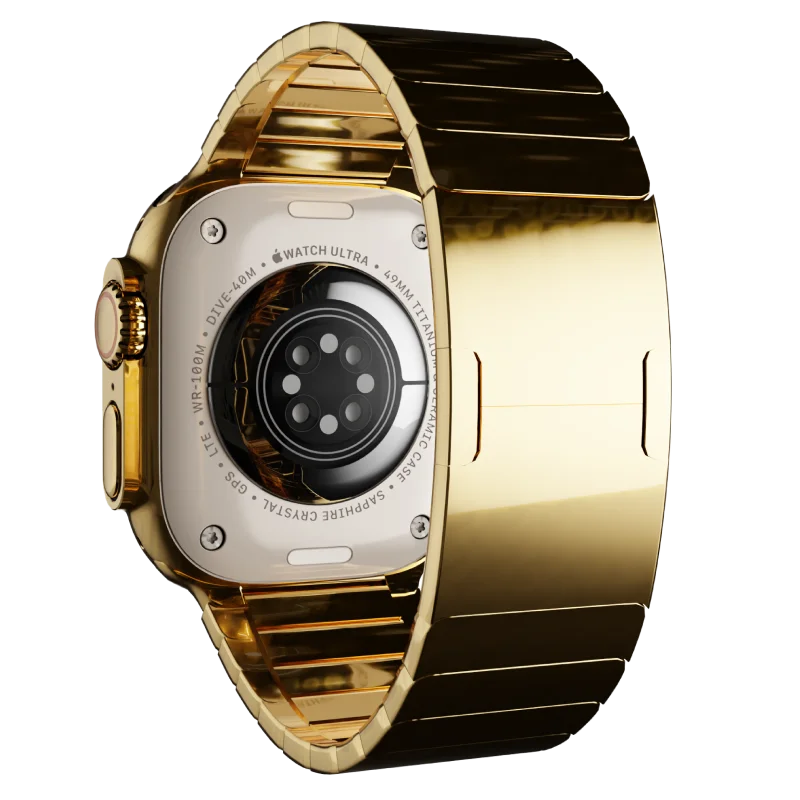 With its distinctive Elite Loop design, this watch represents the pinnacle of luxury and sophistication, ideal for those who value unique elegance. Elevate your accessory collection with this bespoke 24k Gold Apple Watch Ultra, a truly exclusive addition crafted for discerning tastes